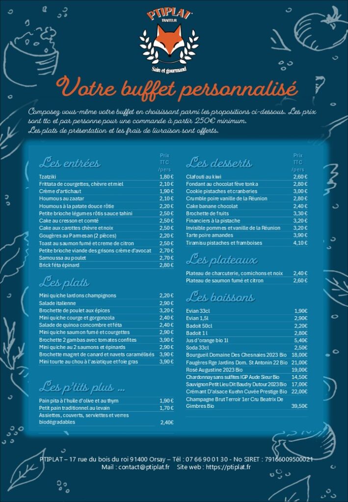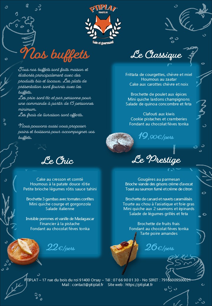 Choisissez l’un de nos buffets dans notre carte ci-dessous ou composez vous-même votre buffet personnalisé parmi toutes nos propositions !